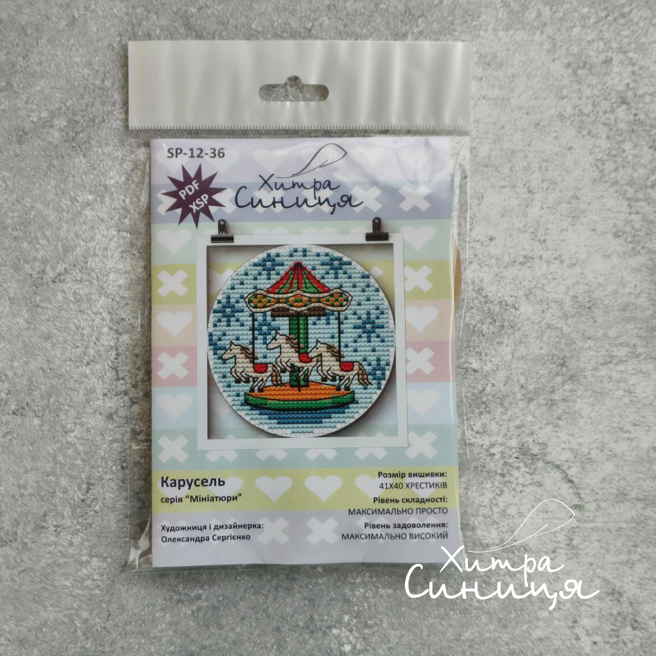 Набір містить також qr-код з посиланням на файл зі схемою у форматі PDF і форматі XSP, який дозволяє вишивати за допомогою застосунків.