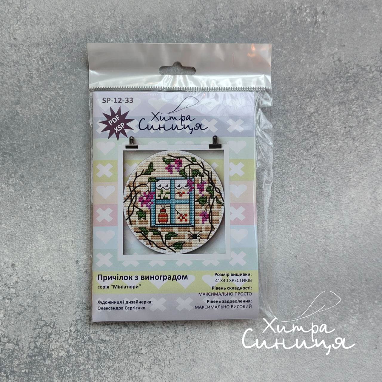 Набір містить також qr-код з посиланням на файл зі схемою у форматі PDF і форматі XSP, який дозволяє вишивати за допомогою застосунків.