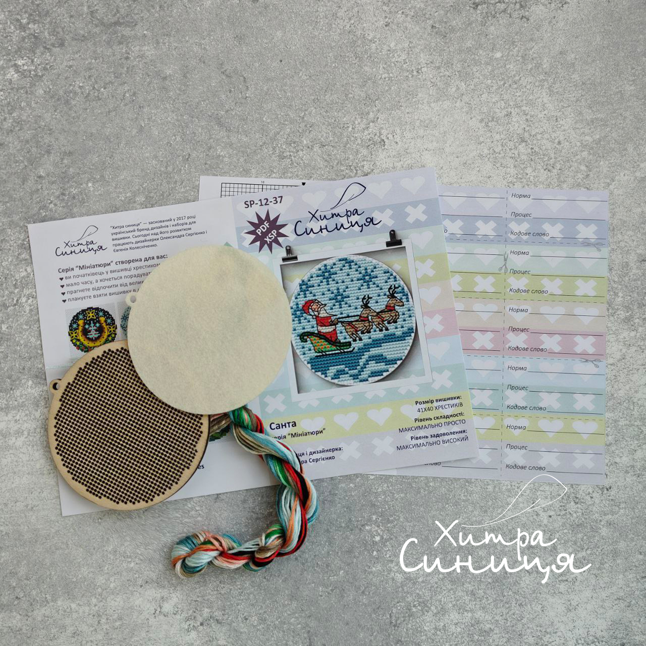У складі набору: дерев’яна заготовка, перфорована під вишивку, фетрова висічка для задника, нитки DMC на органайзері, схема, інструкція, голка.