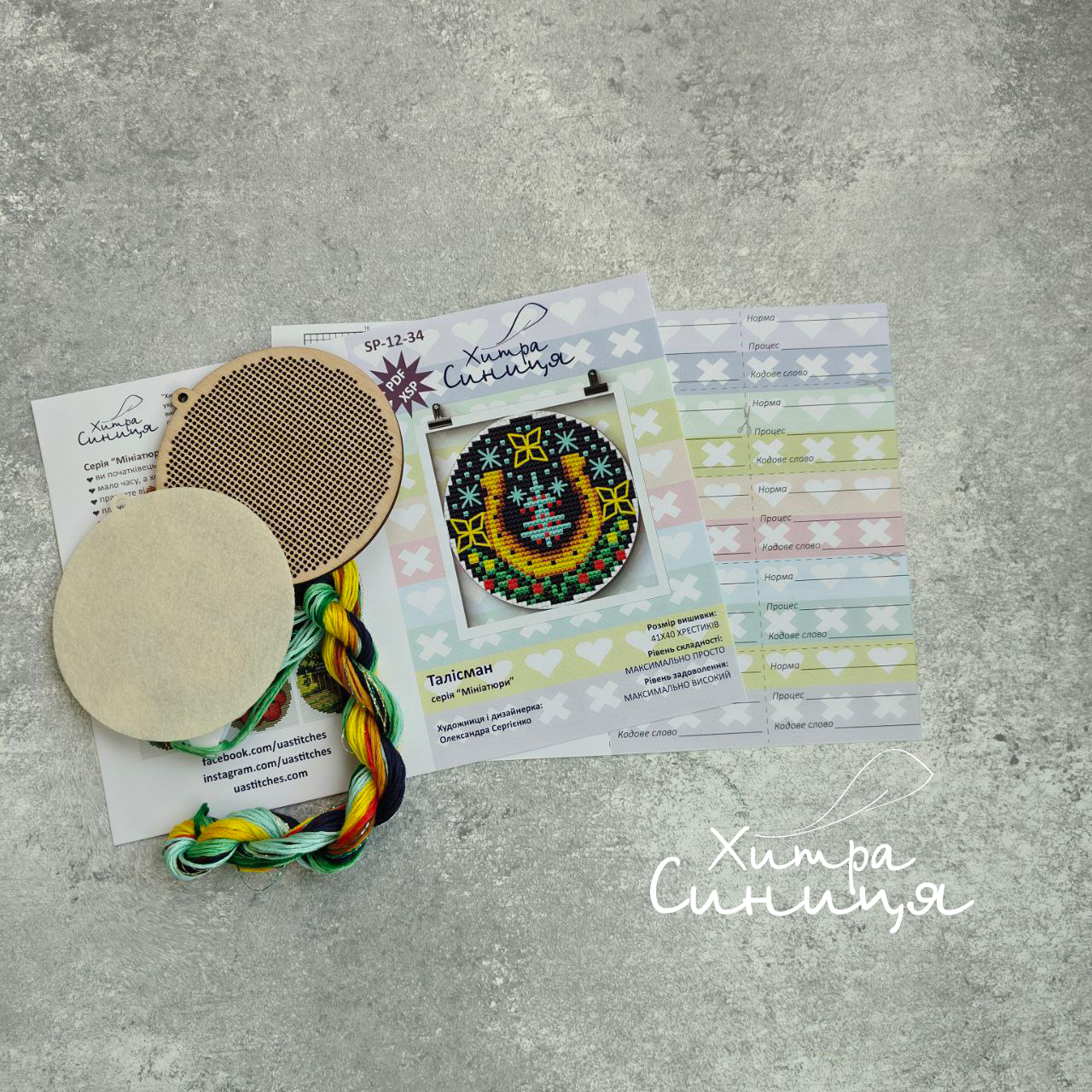 У складі набору: дерев’яна заготовка, перфорована під вишивку, фетрова висічка для задника, нитки DMC на органайзері, схема, інструкція, голка.